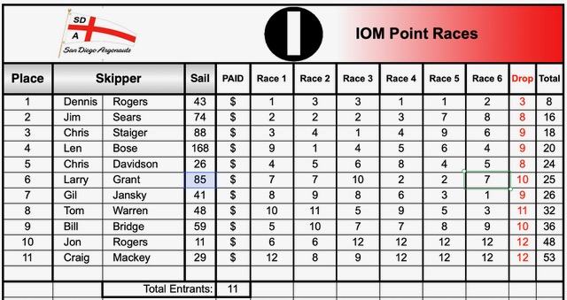 Last Saturday was a beautiful winter day in San Diego!  We had an exceptional turnout with DF95 and IOM skippers eager to finish the points season on a positive note..