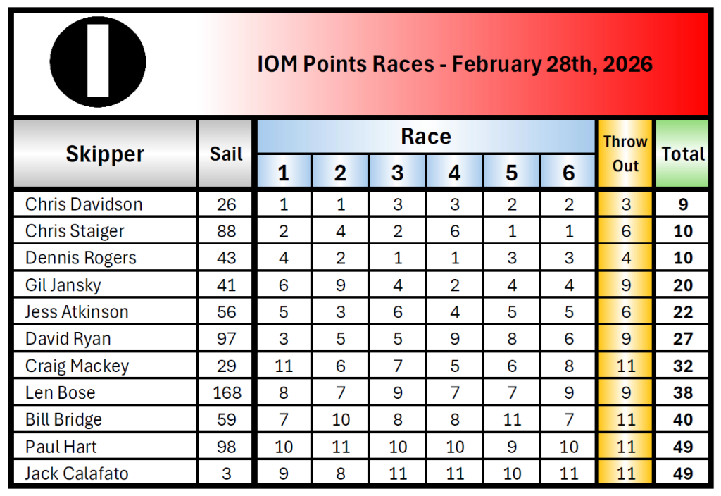 • Points Day Results – DF95 & IOM (Dec. 27th 2025)