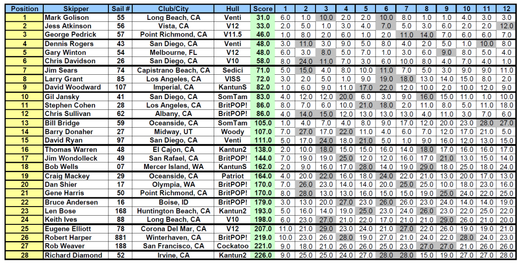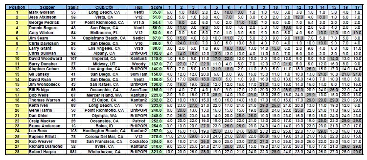 Sunny skies, cool temperatures and southwesterly winds were the order of the day. Vice Commodore of Sail Chris Davidson RD’d both the Solings and the Odoms. The soling were first with surprisingly heavy winds (but with major shifts and holes at the windward end). Results follow: