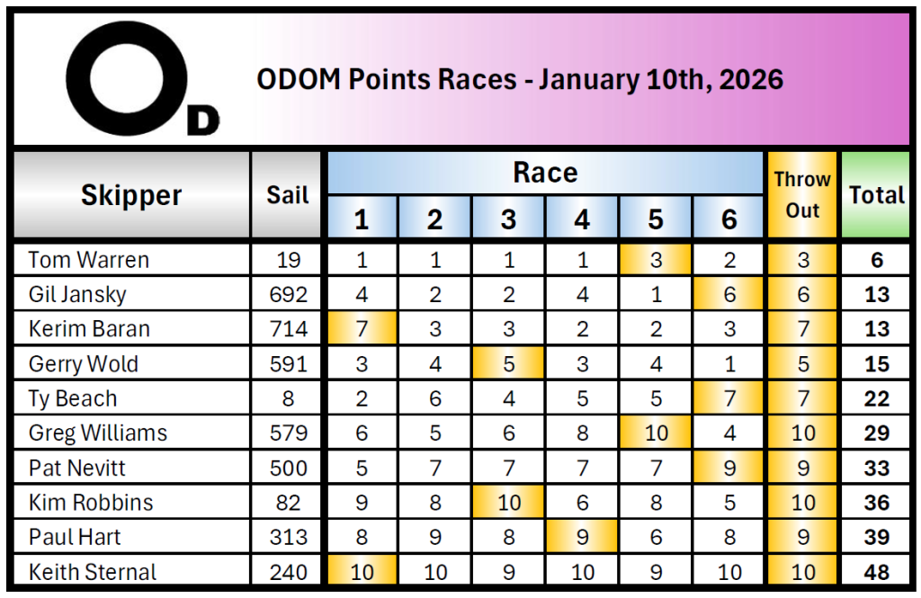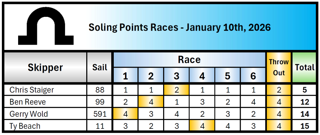 Perfect San Diego conditions for our first day of Points racing in 2026! Despite the Santa Ana winds that were forecast, we had sunny, 70 degree weather with light to moderate westerly winds.