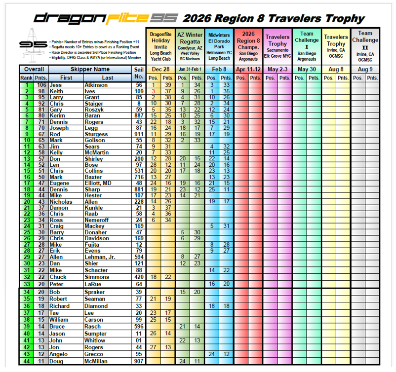 Len Bose and Doc Elliott were trapped in Orange County due to the closure of I-5, so there were 8 competitors for the 2025 Fun & Fowl Regatta. Saturday began drizzly, cold and windless, but a sizeable Peanut Gallery gathered to witness the spectacle.